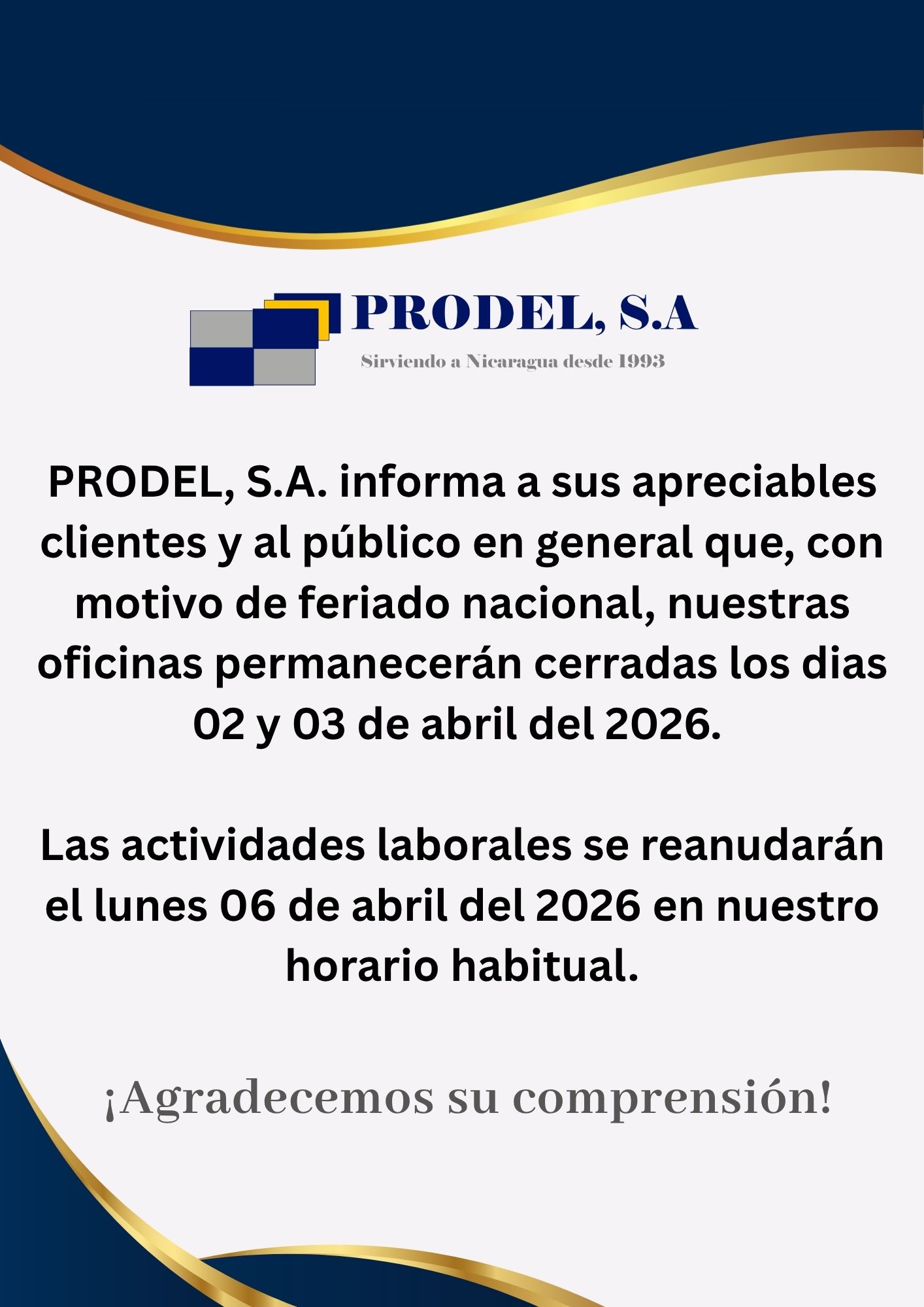 El portafolio de PRODEL, S.A incluye productos para la microempresa, la construcción y mejora de vivienda, para apoyar el sector agropecuario y el financiamiento del crédito personal para consumo. Igualmente, PRODEL, S.A, ofrece al sector de Microfinanzas, créditos para implementar procesos de capacitación, adquisición de nueva tecnología crediticia y compra de softwares y equipos.